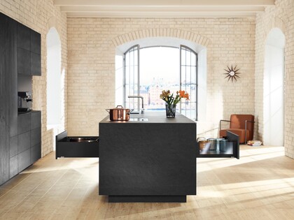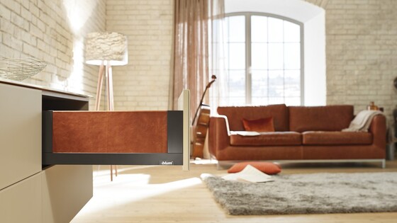 Além da LEGRABOX pure com acabamentos fosco e metálico, extensões frontais da altura C também podem ser ainda individualmente compostas com as variantes de design LEGRABOX free. Seja vidro, madeira, couro ou pedra – elementos de design amplos estabelecem diferenciais efetivos.
