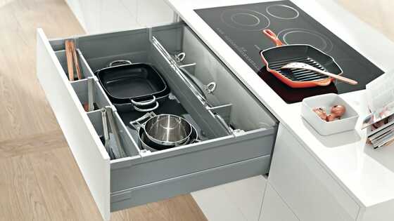 TANDEMBOX, o comprovado sistema box em metal oferece um amplo leque de aplicações e as mais diversas possibilidades de design: desde soluções Standard até aplicações especiais. A base é sempre a comprovada guia de gabinete TANDEMBOX, que permite um deslizamento suave e um alto conforto de movimento.