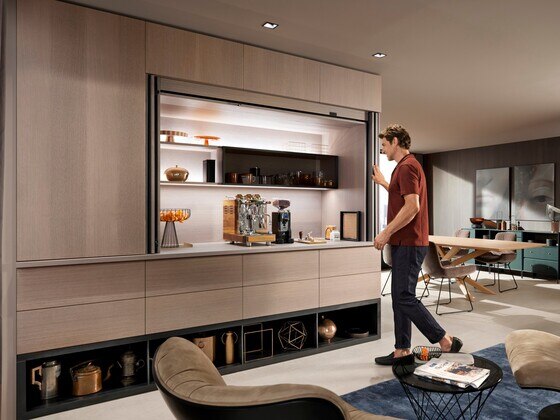"The aim," concludes Patrick Fussenegger, "was to enhance the product in a way that makes it even more compatible with the requirements of modern living. To make it even more flexible and open up even more applications." This responds to the trend for increased fusion of living, dining and working areas. It also takes into account the fact that people want to make best use of the living space available, especially in urban areas. Like all products from Blum, it's not just about good design and the wow factor, but about offering intelligent solutions for a better quality of life. REVEGO has a lot to offer in this regard – the new version will be available as of spring 2025.