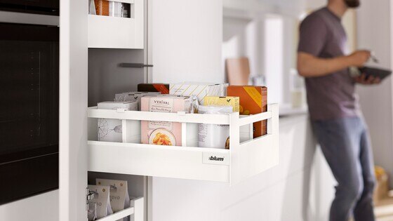This clever cabinet makes optimal use of the storage space available. Provisions can be kept together and clearly organised.
