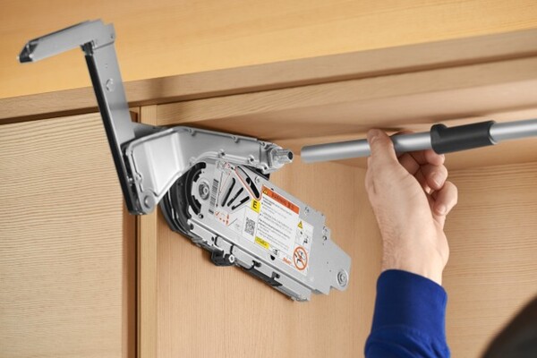 AVENTOS HS component parts are easily assembled with CLIP technology. And adjustments are quick and simple. Once the lift mechanism has been precisely adjusted to the weight and size of the front, AVENTOS HS will open, close and hold with reliable ease. Protruding parts can be removed to facilitate transportation.