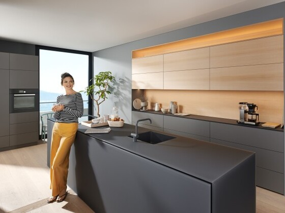 Preklopni okovi AVENTOS donose visoku razinu udobnosti kretanja za svaki gornji ormarić te se nježno i tiho zatvaraju zahvaljujući funkciji BLUMOTION.