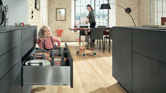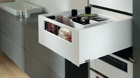 Sustavi LEGRABOX pure i LEGRABOX free nude vam izbor plemenitih, mat boja i posebno visokokvalitetnu varijantu plemenitog čelika na kojem ne ostaju otisci prstiju na površini – za elegantne ladice od metala.