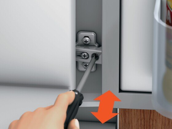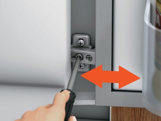 Čak i u ugrađenom stanju je kod spojnica za vrata hladnjaka pričvršćena pomoću kliznih vodilica osiguran dobar pristup trodimenzionalnom namještanju.