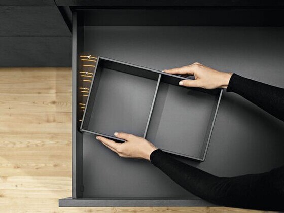 Okviri se mogu postaviti u ladicama i izvlačenjima prema želji. Sigurno uporište okvira za ladice koji su ovisni o nazivnim duljinama omogućuju magnetno fiksiranje, protuklizne nožice i funkcija stezanja.