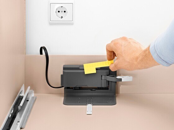 SERVO-DRIVE se montira u samo nekoliko koraka i u najvećoj mjeri bez alata; s pomoću strojeva za montažu brzo ćete pronaći ispravan položaj za montažu pogonske jedinice. A dubina se automatski namješta postavljanjem i zatvaranjem izvlačenja.