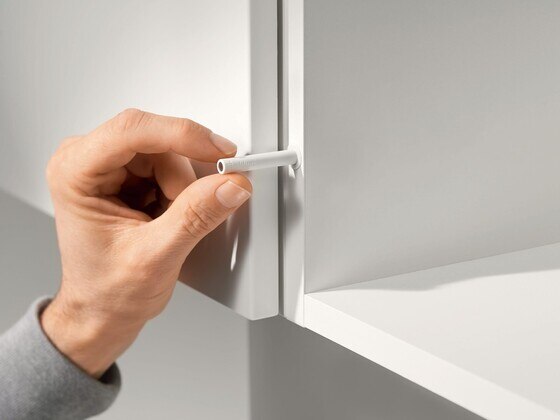 S integriranim namještanjem proreza vrata TIP-ON nudi sofisticiranu tehniku i veliku udobnost namještanja. Za montažu stoje specijalne šablone tvrtke Blum na raspolaganju. One dodatno olakšavaju obradu i podupiru optimalnu funkciju mehanizma TIP-ON.