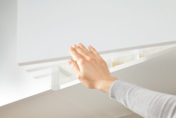 This product snippet shows the function as well as different colours and variants of the TIP-ON unit of TIP-ON for doors.