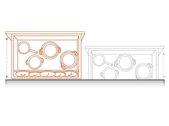 Praktičnim primjenama u ormarima omogućava se dobar radni tijek u kuhinji, dok se postojeći prostor može optimalno iskoristiti.