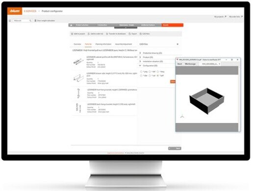 Kako bi vam pružila optimalnu podršku prilikom planiranja i proizvodnje, tvrtka Blum omogućuje vam brojne različite CAD/CAM formate. Servis za CAD/CAM podatke pruža pregled svih raspoloživih podataka na jednom središnjem mjestu. Tako možete jednostavno preuzeti CAD podatke pojedinačnih 3D proizvoda ili 3D sustava, 2D crteža za izradu, 2D situacija ugradnje i cjelokupne CAD pakete – brzo i u svakom trenutku.