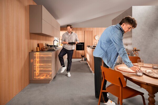 Notre assistance électrique à l’ouverture pour toute la cuisine : SERVO-DRIVE pour les blocs-tiroirs et portes relevables, SERVO-DRIVE uno en tant que solution individuelle pour le bloc-tiroir à déchets et SERVO-DRIVE flex pour les appareils encastrés avec faces sans poignée.