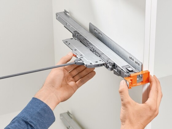 Het gebruik van de synchronisatie vergroot het triggerbereik en verbetert de werking van TIP-ON BLUMOTION. Voor verschillende binnencorpusbreedte zijn twee synchronisatiemogelijkheden beschikbaar. Beide zijn volledig werktuigloos te monteren.