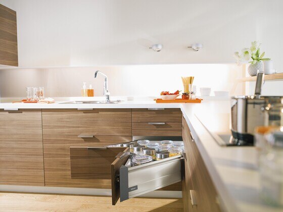 A ideia da Blum para armários estreitos oferece uma possibilidade simples de utilizar também os menores espaços disponíveis.