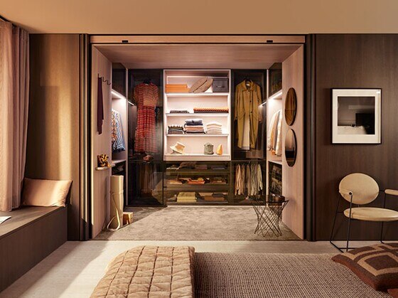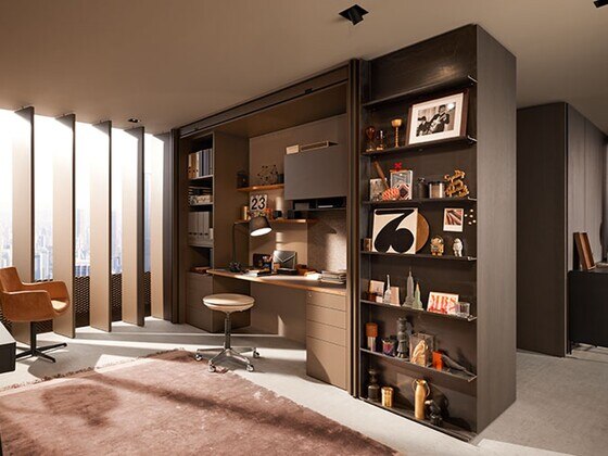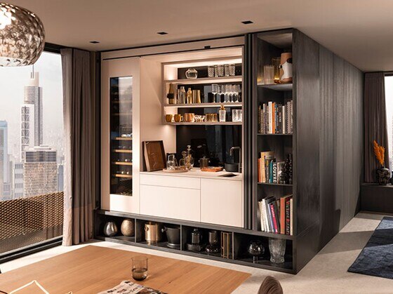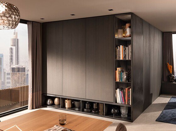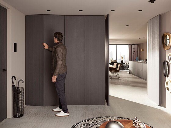La nouvelle catégorie de produits « Systèmes Pocket » vous ouvre de toutes nouvelles perspectives pour une utilisation multifonctionnelle de l'espace : grâce à REVEGO, le système unique de porte coulissante avec technique entièrement intégrée, vous ouvrez des espaces de vie complets lorsqu’ils sont utilisés, puis vous les dissimulez à nouveau. Qu’il s’agisse d’application porte simple ou porte double, les faces en applique totale disparaissent dans un corps de meuble étroit spécialement dédié, la Pocket.