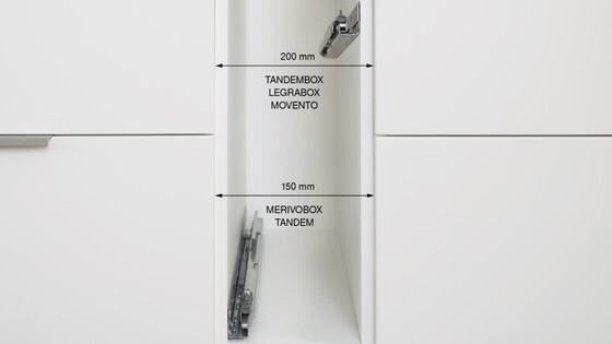 Die Lösung für schmale Schränke ist mit allen TANDEMBOX-Programmlinien kompatibel.