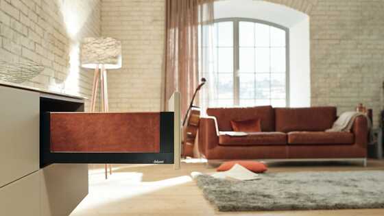 Une flexibilité qui permet de réaliser en même temps plusieurs technologies de mouvement avec une seule coulisse, et une fonction optimale d’amortissement adaptée à chaque technologie - voilà ce qu’offre notre nouvelle coulisse BLUMOTION S pour LÉGRABOX et MOVENTO.