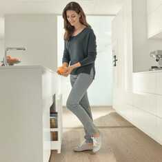 Appuyer brièvement sur la face ou tirer légèrement sur la poignée suffit pour que les tiroirs et les blocs-tiroirs s'ouvrent comme par enchantement. BLUMOTION assure une fermeture douce et silencieuse. La force et le point d'appui sur la face n'ont aucune importance.