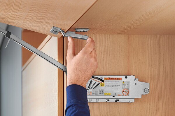 Il montaggio è realizzabile quasi senza attrezzi grazie alla collaudata tecnica CLIP. Le regolazioni si eseguono rapidamente con semplici operazioni. Una volta che la base forza è stata perfettamente regolata in base al peso e alle dimensioni del frontale, l’anta a soffietto si apre, si chiude e si arresta sempre in modo affidabile. Per facilitare il trasporto è possibile rimuovere i componenti sporgenti.