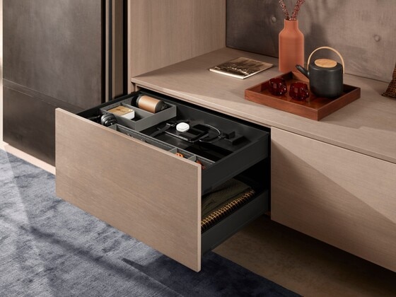 AMBIA-LINE vnáší do zásuvek perfektní pořádek. Systém vnitřního členění s elegantním štíhlým designem rámečků je speciálně přizpůsoben pro LEGRABOX a nabízí široké možnosti uspořádání vnitřního prostoru nábytku.