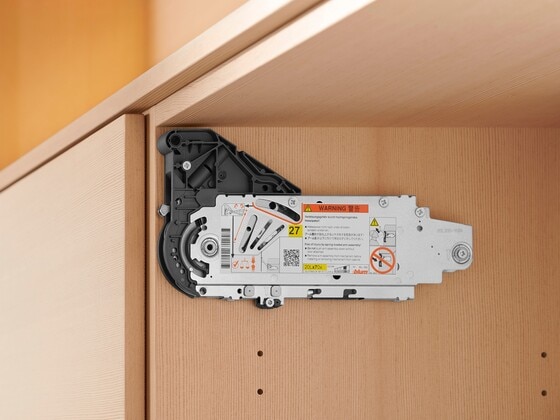 Přehledný sortiment AVENTOS HL umožňuje snadnou montáž a rychlé nastavení. Je-li zdvihač nastaven zcela přesně na hmotnost a velikost čela, bude se zdvihací výklop navždy otvírat, zavírat i zastavovat spolehlivě. Pro snadnější přepravu se dají přečnívající díly sundat.