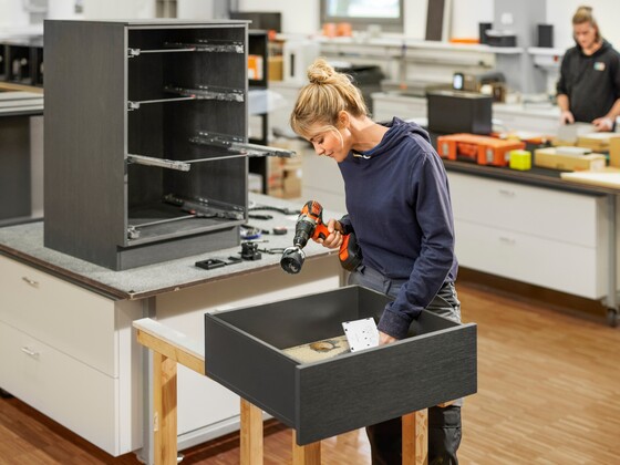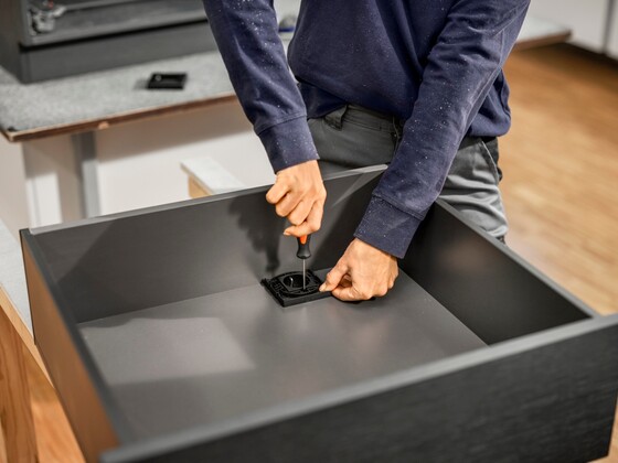 For at indbygge stikkontakten, er en boring i skuffebunden tilstrækkelig.