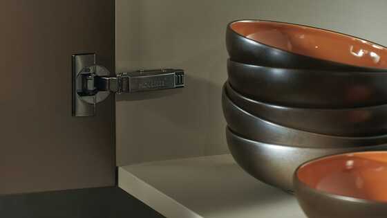 Mørke møbler står for enkelt design - både udvendig og indvendig. Hængsler i onyxsort passer diskret til møblet og skaber dermed en helhed For større udformingsfrihed ved møbelfremstilling af høj kvalitet, uden at gå på kompromis med designet.