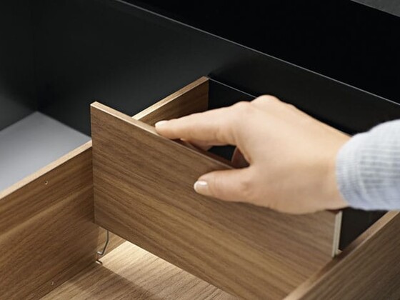 Rammerne kan placeres efter ønske i skuffer og udtræk. En magnetfiksering, antirutschfødder og en fastgørelsesfunktion, sørger for at de længde-afhængige rammer til skufferne bliver holdt på plads.