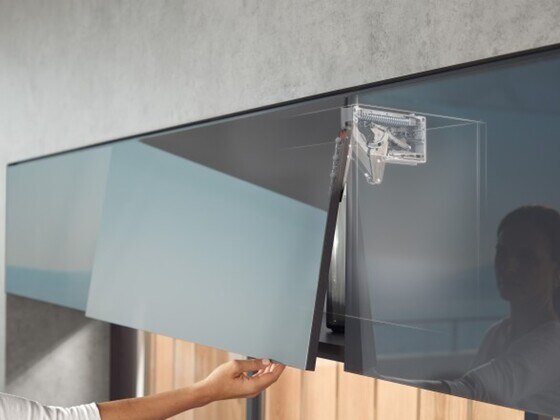 AVENTOS HK top tilpasser sig diskret i høj- og overskabe. Klaplågebeslaget har allerede fået flere udmærkelser for sit minimalistiske design.