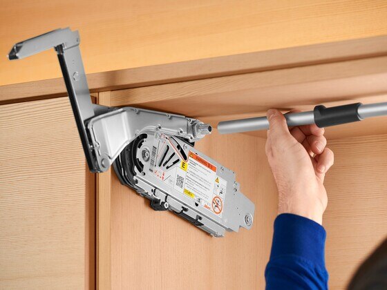 Den værktøjsløse tværstabillisering til AVENTOS HS, gør anstrengelserne ved montagen betydeligt mindre.