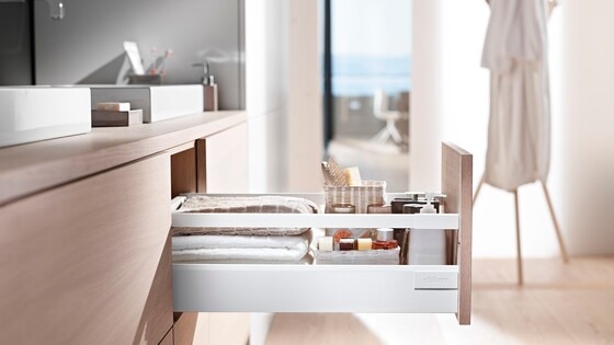 TANDEMBOX antarot iseloomustavad selgepiiriline disain ja kandiline reeling. Nii saad minimalistlikku disaini laiendada sahtlitele ja sahtlikülgedele.