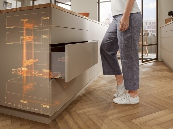 Sistem bukaan ke atas AVENTOS menghadirkan kualitas gerak terbaik dan meningkatkan kenyamanan penggunaan kabinet atas. Furnitur menutup dengan senyap dan ringan berkat BLUMOTION.
