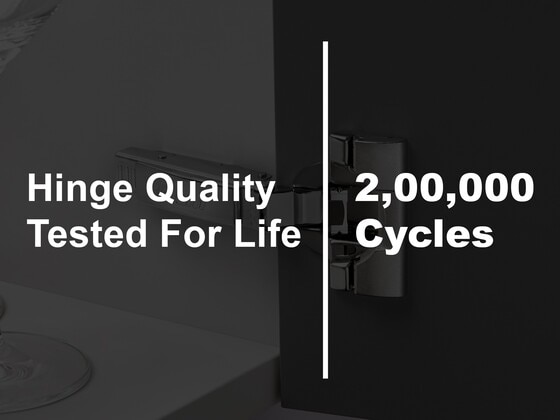 Picking the perfect outfit for the day can be a task—but not opening cabinet doors. Blum tests its soft close hinges to the maximum limit, 2,00,000 cycles, ensuring the same seamless motion every time your cabinets open and close. Forget worrying about cabinet door opening and closing for the lifetime of the furniture with high-quality Blum Hinges—Tested for you, Tested by you.