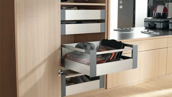 Most larder units, like Blum's SPACE TOWER, give you spacious storage with each pull-out designed with Blum box systems that can hold up to a total of 70 kg. For the organisation, pair these box systems with our inner dividing systems that put each pull-out in neat order.