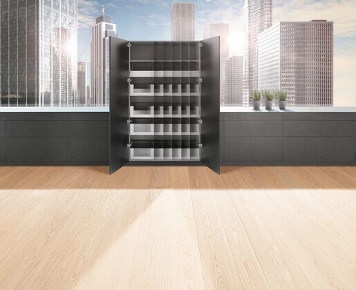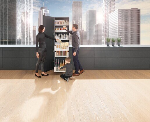 Use Blum SPACE TOWER to maximise and optimise storage in all living spaces, even the smaller ones. The larder unit offers ultimate design freedom to create a storage unit suitable for all kinds of rooms, whether big or small.