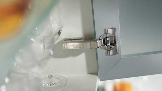 The 110° hinge allows you to implement thicker doors of up to 24 mm – depending on application. The new pivoting point prevents collision with the cabinet front edge when the door is open.
