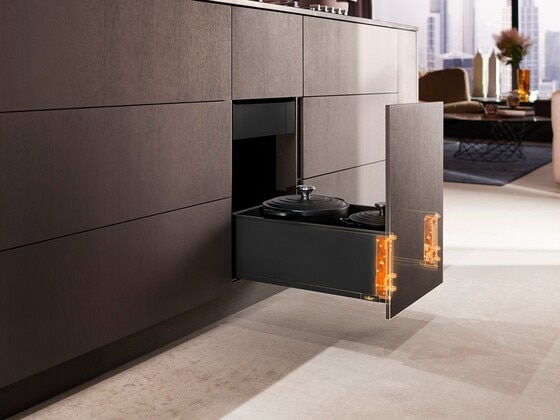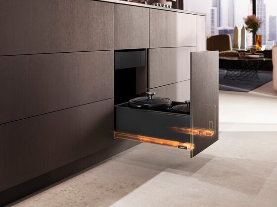 LEGRABOX(레그라박스)는 기술을 선도합니다. BLUMOTION S(블루모션 S) 캐비닛 프로파일이 장착된 LEGRABOX(레그라박스)는 가볍게 열리고, 깃털과 같은 가볍게 미끄러지듯이 움직이므로 서로 다른 세 가지 모션 기술을 유연하게 구현할 수 있습니다. 소프트-클로즈 기능은 모션 기술에 맞게 조정됩니다.