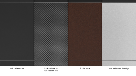Система выдвижения с необычным дизайном царг на основе нового карбонового черного матового цвета, а также сочетание материалов с нержавеющей сталью с защитой от отпечатков пальцев, 3D-текстура «Carbon look» или текстурное покрытие «Noble rust».