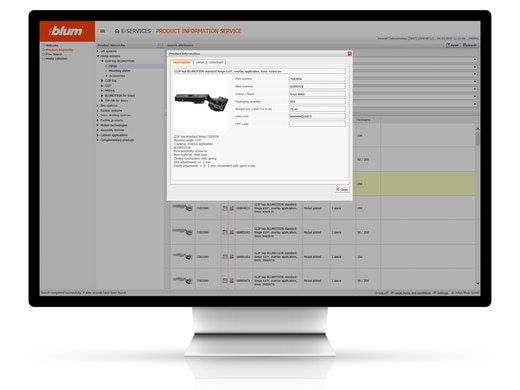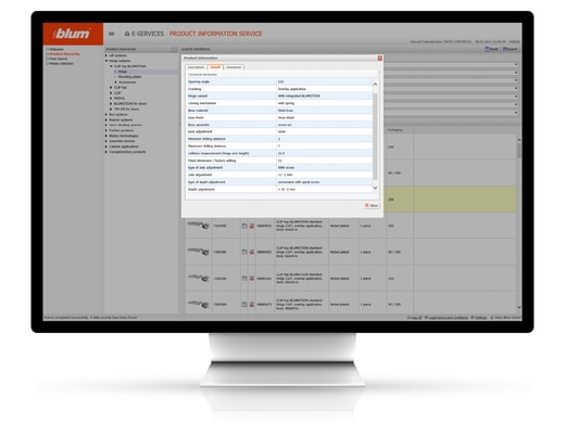 • Various product data can be directly downloaded: Images, diagrams, drawings and CAD data (3D) for planning and design using Blum fittings solutions