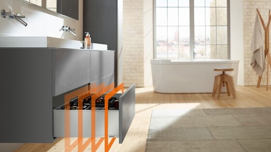 Con BLUMOTION, cada mueble cierra de modo suave y silencioso, independientemente del peso del módulo extraíble, de la puerta o del compás abatible.
