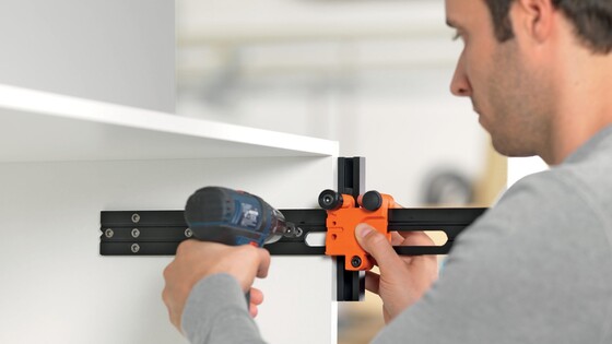 La imagen muestra el uso de la plantilla individual universal para el montaje de AVENTOS.