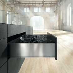 The AVENTOS HK-S stay lift allows you to make optimal use of the storage space available, e.g. above refrigerators or pantry units. The compact lift mechanism fits snugly into small cabinets and excels in terms of assembly ease and user convenience.