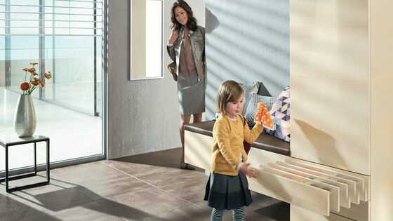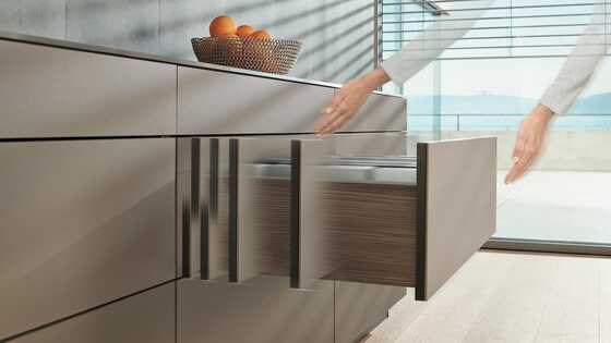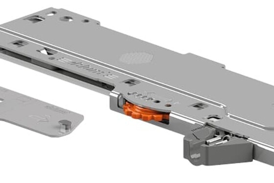 A special MOVENTO runner has been designed to support the mechanical opening support system. Various nominal lengths and weight ranges can be implemented using the different TIP-ON BLUMOTION units available. All other components are universal.