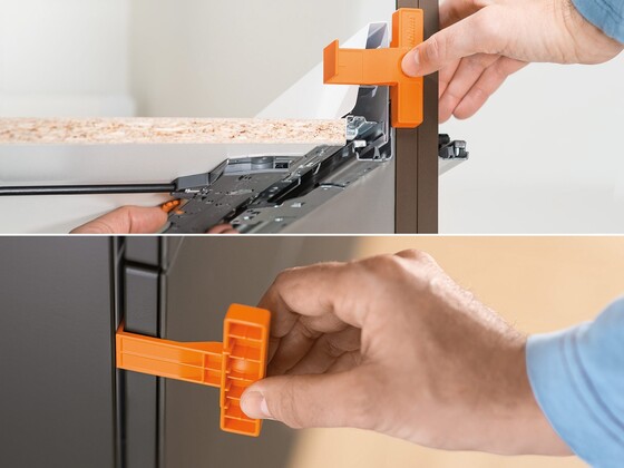 Like most components, the TIP-ON BLUMOTION unit is assembled without tools.