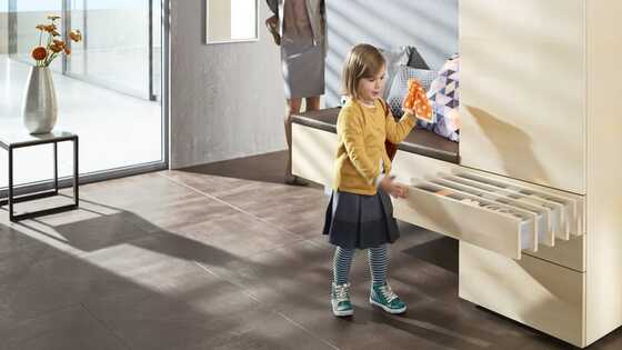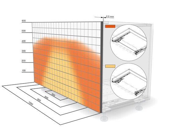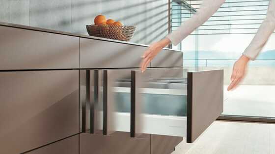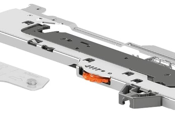 A special TANDEMBOX cabinet profile has been designed to support the mechanical opening support system. Various nominal lengths and weight ranges can be implemented using the different TIP-ON BLUMOTION units available. All other components are universal.
