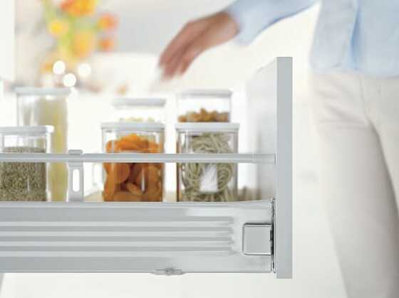 Gavetas de metal Blum com lateral fina para todos os ambientes. Compostas individualmente para as mais altas exigências de design.