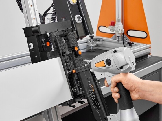 Parafusos ou pregos? Além da clássica técnica de fixação por aparafusamento, está disponível outra possibilidade com a nova ajuda de montagem BOXFIX plus: monte os sistemas box LEGRABOX, MERIVOBOX e TANDEMBOX sem folgas e de forma significativamente mais rápida – com a nova técnica opcional de fixação com pregos. No processo, o aperto pneumático aumenta seu conforto de montagem.