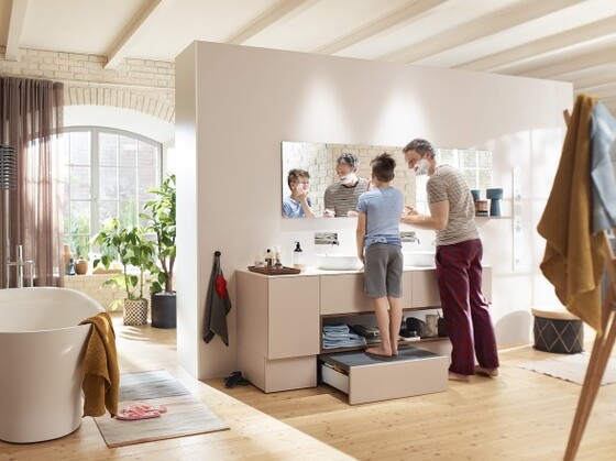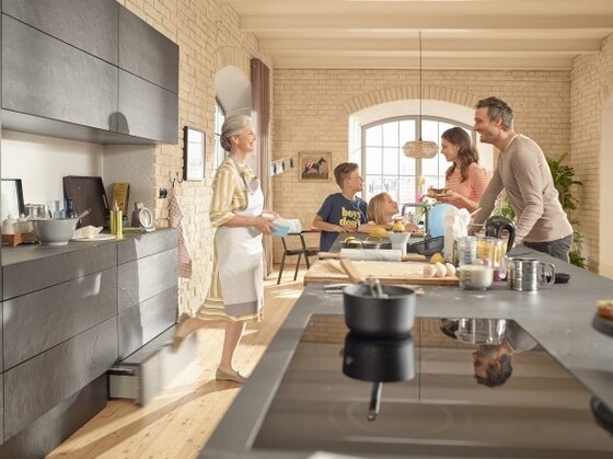Conseguir um novo espaço disponível na base, alcançar o armário suspenso com muita facilidade e deixar crianças ajudarem com segurança – o SPACE STEP permite muita funcionalidade na base do móvel.