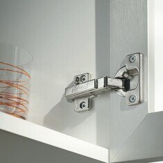 A dobradiça CLIP top BLUMOTION 107° impressiona pela profundidade de furação menor do caneco de apenas 11.5 mm. Com isto, a dobradiça é ideal para portas de móveis já a partir de uma espessura de 15 mm.