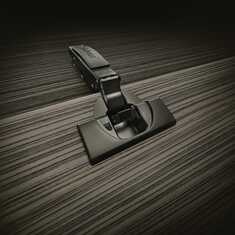Com a dobradiça 110° você poderá realizar – de acordo com a situação de recobrimento – portas espessas de até 24 mm. Com novo ponto de giro – para que a porta não bata na aresta dianteira do gabinete na condição aberta.