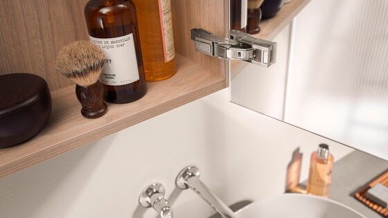 A CLIP top BLUMOTION concentra a tecnologia inovadora, a premiação internacional em design e o conforto de movimento em um menor espaço – porque o mecanismo amortecedor BLUMOTION já vem integrado ao caneco da dobradiça.
